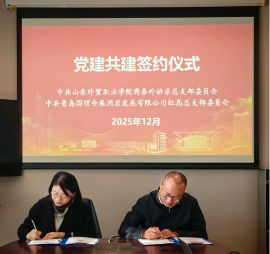双方签订了党建共建协议。刘永美指出,青岛国际会展中心作为青岛市会展行业的龙头企业,不仅具备丰富的实践资源,更在党建引领企业发展方面积累了宝贵经验。此次共建是系部深化“党建+业务”融合、拓展育人平台的重要举措。未来,betway88西汉姆联与青岛国际会展中心将持续探索党建引领下校企协同育人的有效路径,希望通过共建,实现党建引领下人才培养与行业需求的无缝对接,为学生成长赋能,为区域会展经济发展助力。